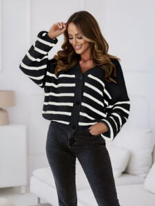 Προσθέστε λίγη διασκέδαση στην γκαρνταρόμπα σας με τη ριγέ ζακέτα! Αυτή η ζακέτα είναι η τέλεια προσθήκη σε οποιαδήποτε εμφάνιση, με δημιουργικά σχέδια που θα τραβήξουν όλα τα βλέμματα πάνω σας. Φτιαγμένο από μαλακό ύφασμα, είναι ιδανικό για να σας κρατάει ζεστές τις ψυχρές μέρες και νύχτες. Το παιχνιδιάρικο ριγέ μοτίβο συνδυάζει τέλεια το στυλ με την άνεση, και μπορείτε να το συνδυάσετε με τζιν, φούστες ή ακόμη και να το φορέσετε πάνω από το αγαπημένο σας φόρεμα! Μην χάσετε την ευκαιρία να ανανεώσετε την εμφάνισή σας με αυτό το ριγέ. Tο one size καλύπτει από small έως large.